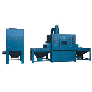 采用三角皮帶輸送工件,不會積砂,皮帶速度配合噴砂工藝要求可實現變頻調速; 每支噴槍角度可自由調節(jié)槍架實現自動變頻搖擺,并可定點噴砂,靈活適用性廣; 采用先進的上旋風分離系統(tǒng)配置,粉塵分離效果好,噴砂效率高;