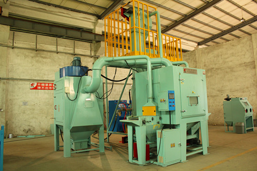 五 砂料的回收 噴砂后的砂料及粉塵通過風(fēng)力循環(huán)送至儲(chǔ)砂斗。主回砂管由特制的高耐磨無縫鋼管制作而成,管內(nèi)襯托高耐磨的硅膠板,可以保護(hù)管道的磨損。回收方式采用上進(jìn)風(fēng),下抽的形式,有效的把砂料回收到儲(chǔ)砂斗內(nèi),回收效率可達(dá)到到99%。